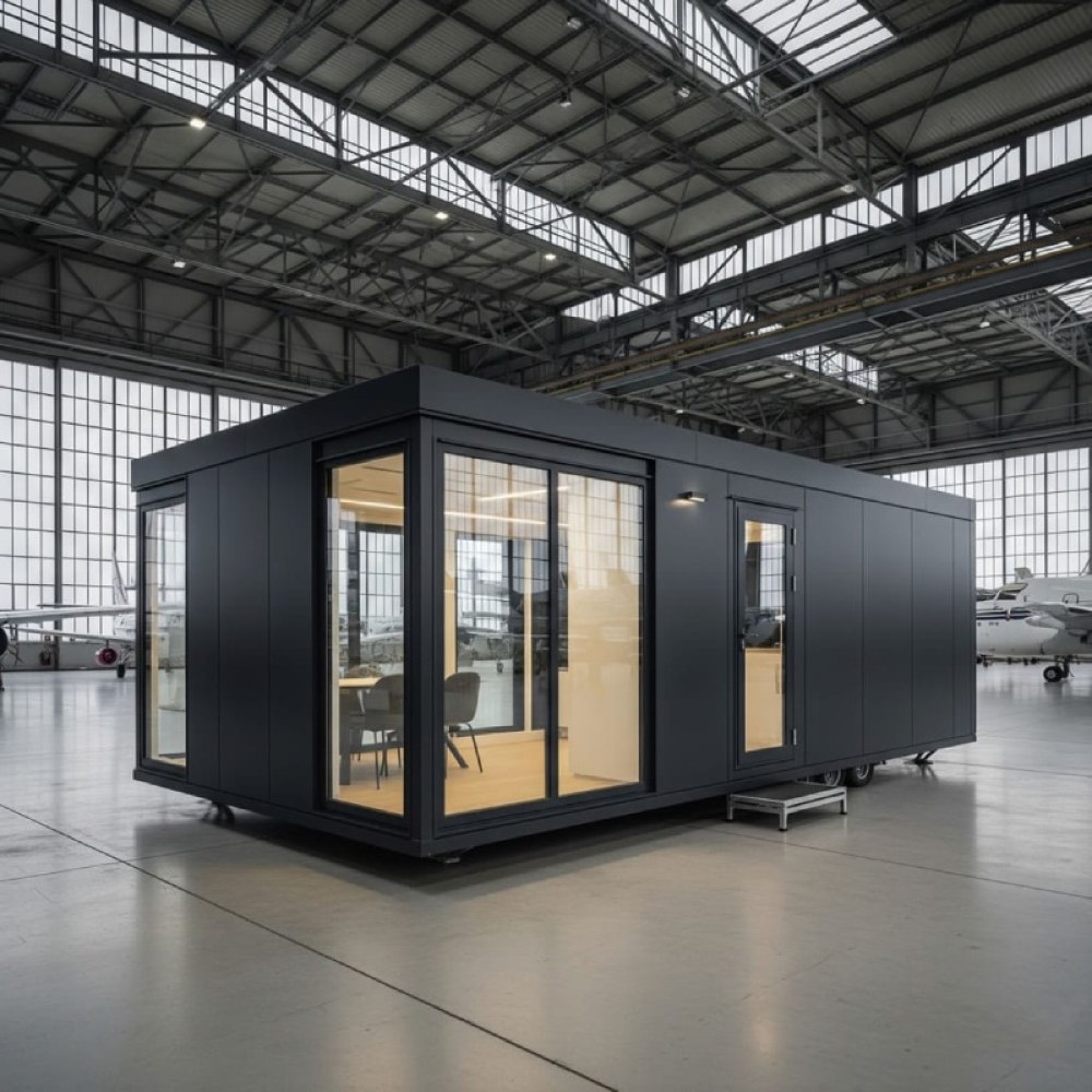 Прикладом такої конструкції є https://artmetall.ua/mini-office.html, де мобільне приміщення оснащене необхідними інженерними системами та вузлами комунікацій. Наявність техніки всередині модуля дозволяє повноцінно проводити наради, бізнес-зустрічі або презентації.