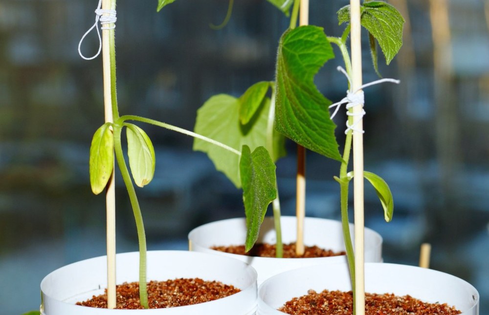 При посадке саженцев колышки устанавливают до формирования мощной корневой системы, чтобы избежать повреждения корней. Крепить растения к опорам можно мягкой тканевой лентой или биоразлагаемым шпагатом. Подвязывать растения следует с учётом роста: первая точка фиксации находится на высоте 15–20 см от грунта, следующая — через каждые 25–30 см. Это предотвратит перетягивание и обеспечит равномерное распределение нагрузки на стебли, чтобы избежать их деформации.