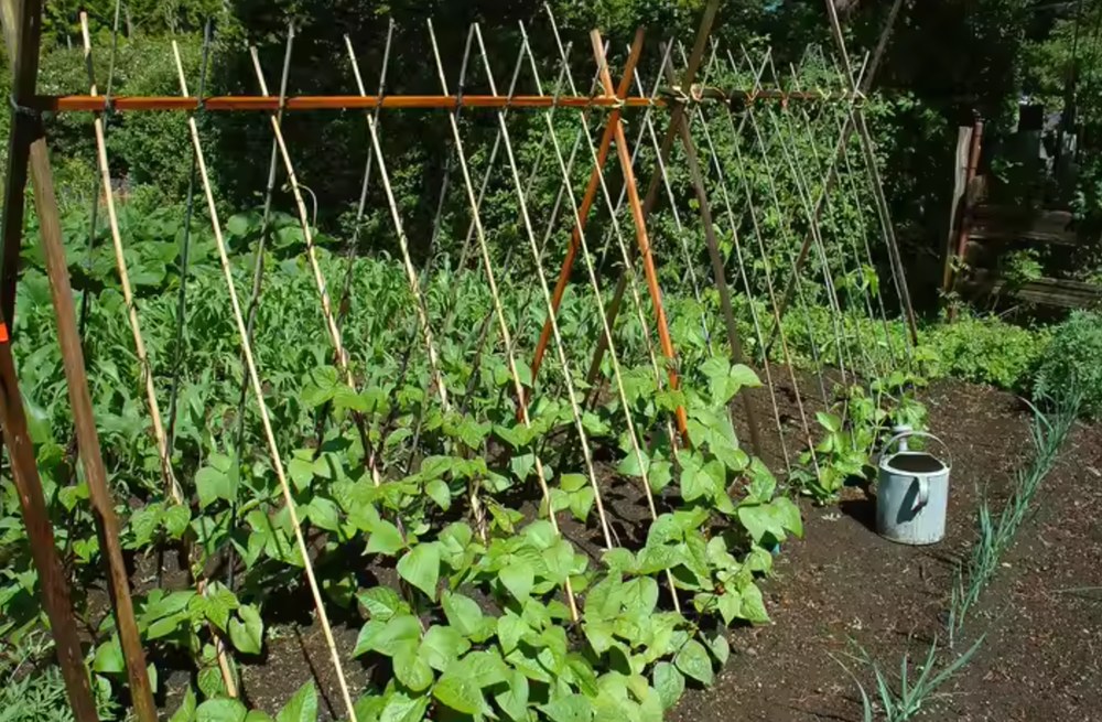 - Трёхногая пирамида – три стержня, связанные вверху, она удобна для посадок гороха и фасоли, не требует сложного монтажа;