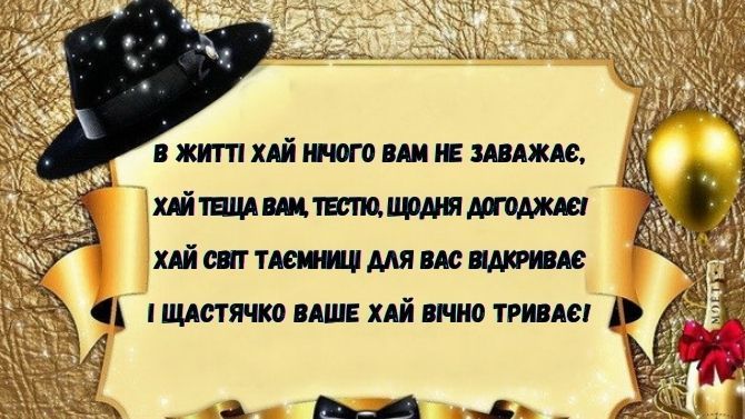 Нехай тебе обходять болячки, тещині настанови і всі недобрі прогнози! Здоров’я, удачі, і щоб зять завжди був хоч трохи корисний!