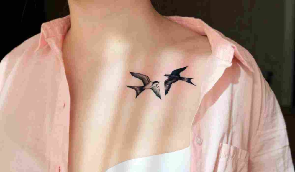 Що означає тату ластівка на ключиці? Ключиця — це місце, близьке до серця, тому тату тут часто пов’язане з емоціями, любов’ю чи духовними цінностями. Ластівка на ключиці може символізувати вірність у коханні, сімейні зв’язки чи прагнення до гармонії. Це місце виглядає жіночно і часто обирається для витончених, мінімалістичних дизайнів, які підкреслюють красу та чутливість.